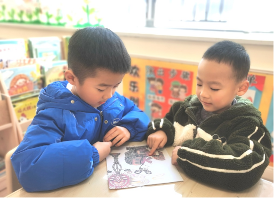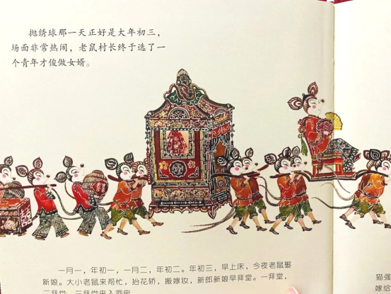 又到了飯后繪本閱讀的時(shí)間,老師拿來(lái)了一本《老鼠嫁女》的剪紙繪本,引起了孩子們的興趣和討論。