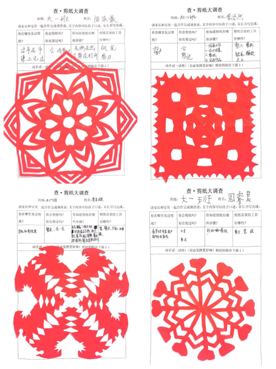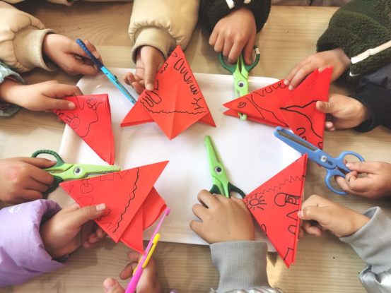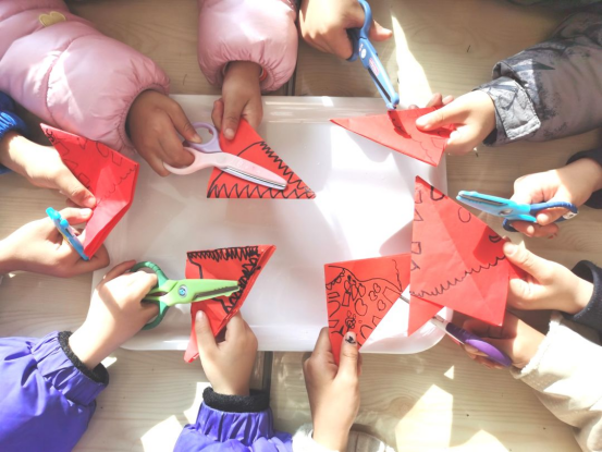 在孩子們的童言稚語(yǔ)中,我們發(fā)現(xiàn)孩子們對(duì)剪紙很感興趣,由此關(guān)于剪紙的課程故事便展開(kāi)了。
