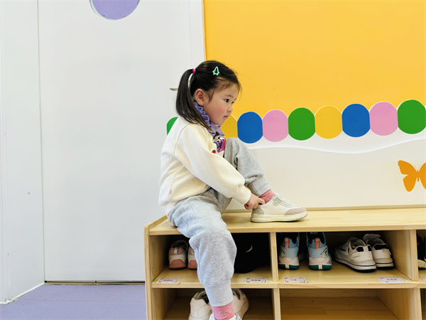 萱萱:午睡時自己脫衣服疊放好,鞋子擺放整齊是好習(xí)慣。