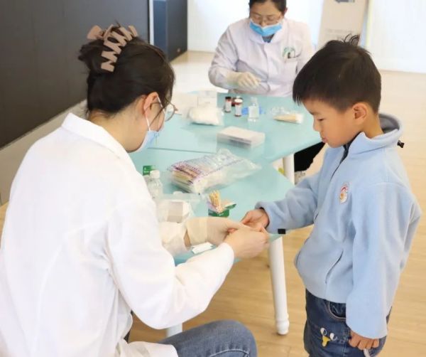 血紅蛋白(Hb)測定是體檢的一項常規(guī)檢查項目,通常通過血液檢查的手段來進行測定,臨床上用來鑒別貧血類型。一年一次的血紅蛋白檢測,為幼兒健康成長提供了有利的條件。這是一部分幼兒比較緊張的一項檢測,快來看看我們的小勇士們吧!
