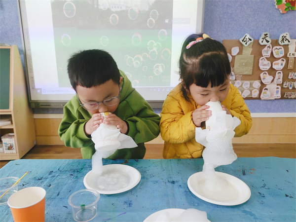 《3-6歲兒童學習與發(fā)展指南》指出:“兒童有著與生俱來的好奇心和探究欲望,要盡量創(chuàng)造條件讓幼兒實際參加探究活動,使他們感受科學探究的過程和方法,體驗發(fā)現(xiàn)的樂趣。將身邊的事物與現(xiàn)象作為探索的對象,基于幼兒的興趣點,合肥市和月融匯幼兒園中一班開展了一場“趣”玩泡泡 探索奧秘的主題活動。