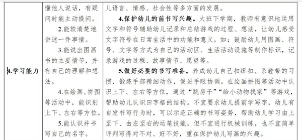 《3-6歲兒童學(xué)習(xí)與發(fā)展指南》明確把書(shū)面表達(dá)的愿望和書(shū)寫(xiě)初步技能納入語(yǔ)言教育目標(biāo)體系,并提出: