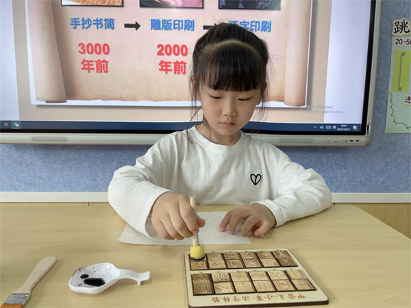 穿越時(shí)光隧道,師幼一起手握“活字”的墨香,一起觸摸古法技藝的神奇,感受印刷漢字的溫情與魅力。
