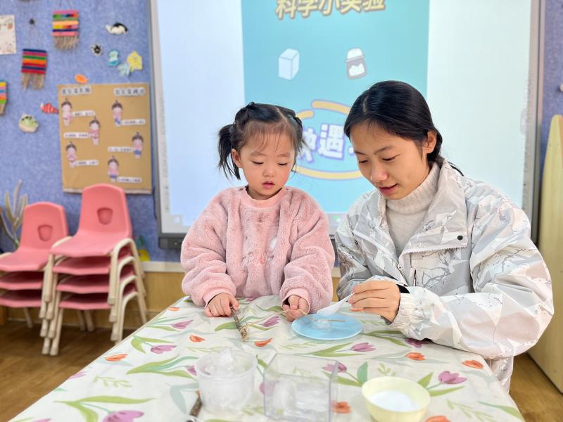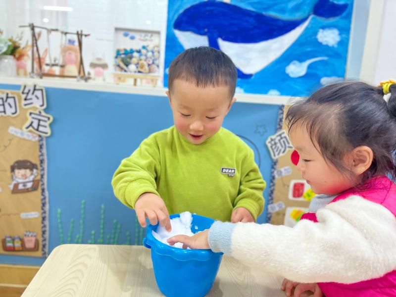教師引導孩子通過動手操作的方式感受下雪后自然的變化。培養(yǎng)孩子的想象力和手眼協調能力。