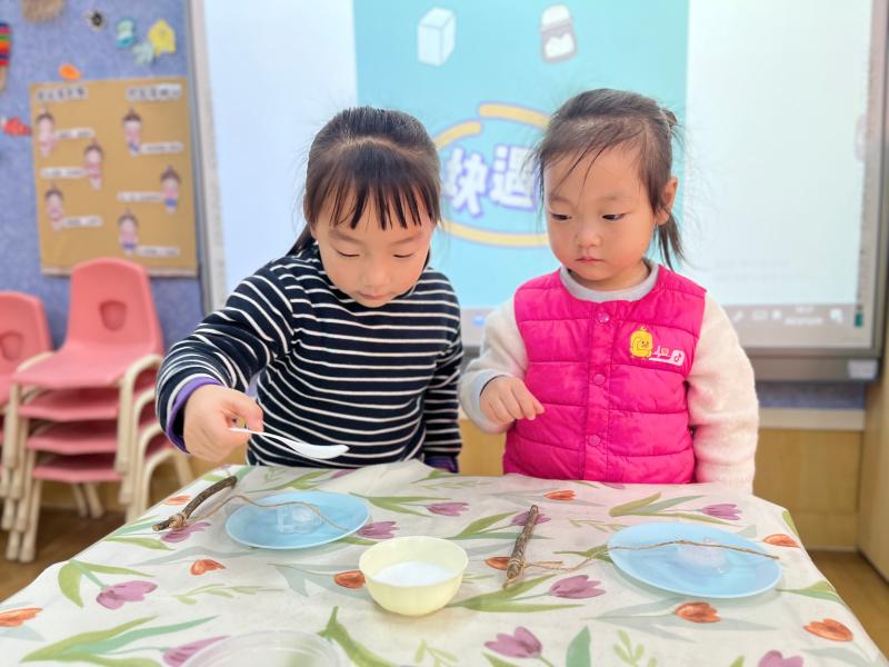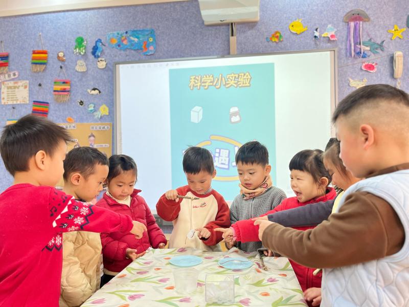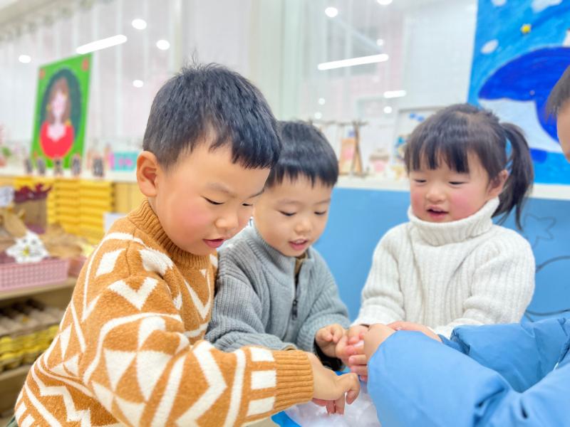 孩子們自入園時就懷揣著好奇心興奮地討論著雪。帶著期待和疑問,孩子們一起學習并認識了雪花,并且通過看一看、聞一聞、摸一摸等方式直觀形象地了解與觀察到了雪花的特征。