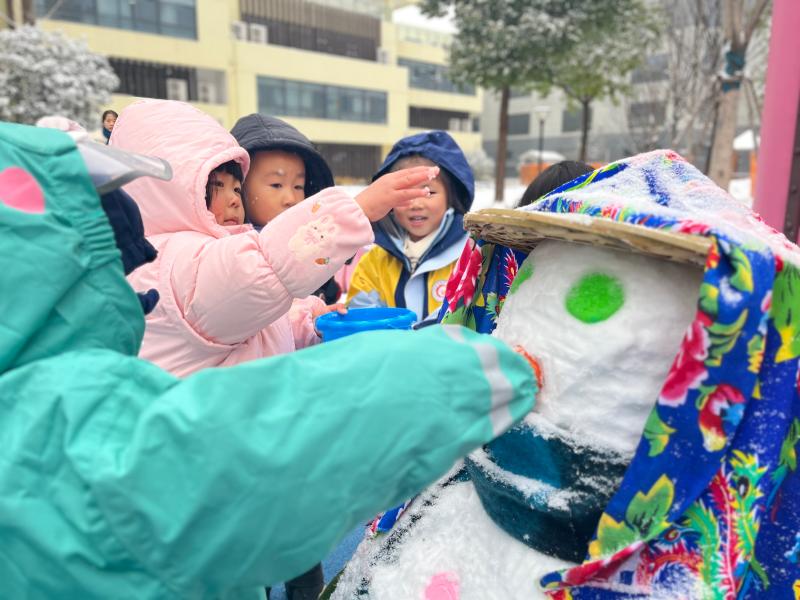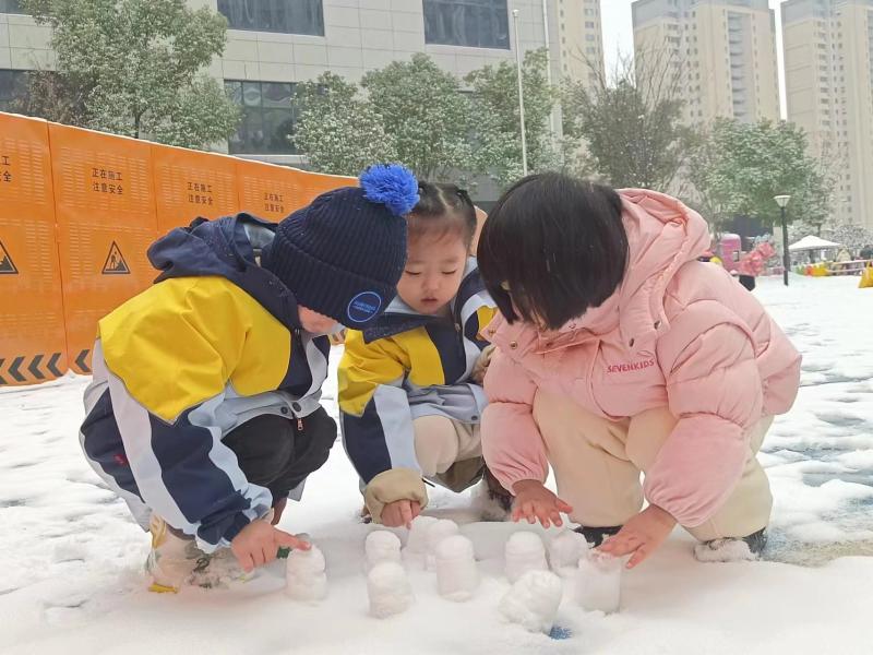 小雪花像一個個小精靈一樣,蹦蹦跳跳地落了下來,孩子們在憧憬中已按捺不住內心的喜悅,在老師的帶領下,興沖沖地來到操場上開始了“玩雪”的活動。老師們寓教于樂,引導孩子多感官感知雪,在與雪的游戲與互動中點綴童心。