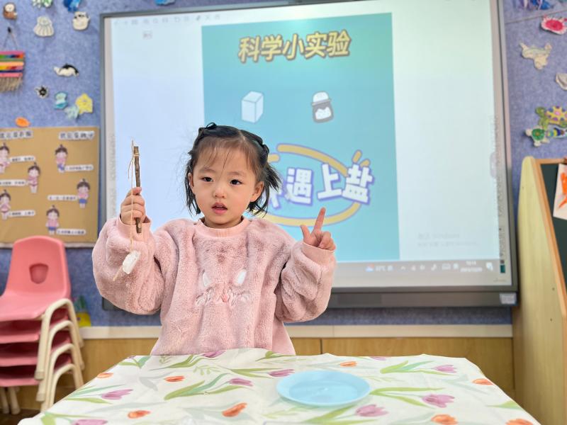 鹽可以降低水的凝固點,使冰更容易融化。往棉線周邊撒入少量食鹽后,融化的雪水又被周邊低溫影響而重新結冰,于是將棉線和冰塊凍在一起。
