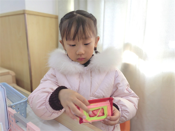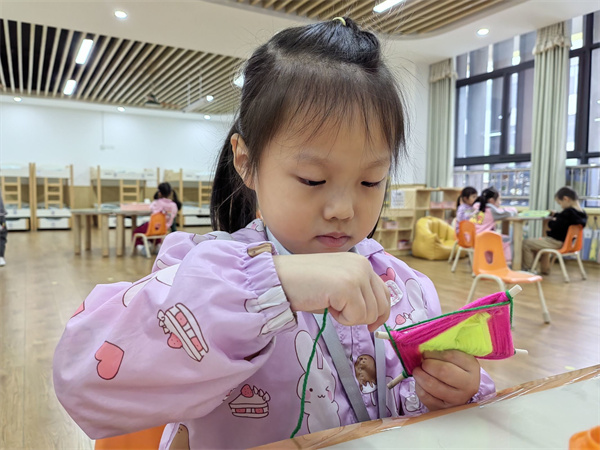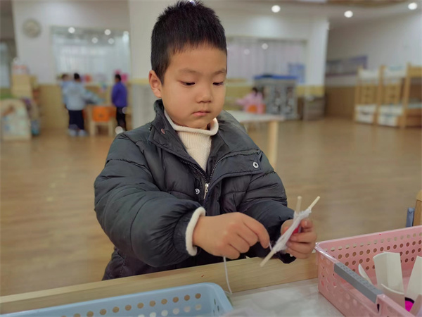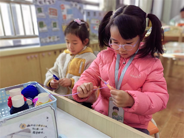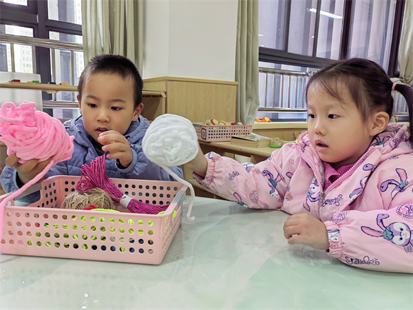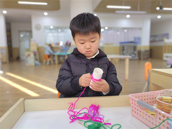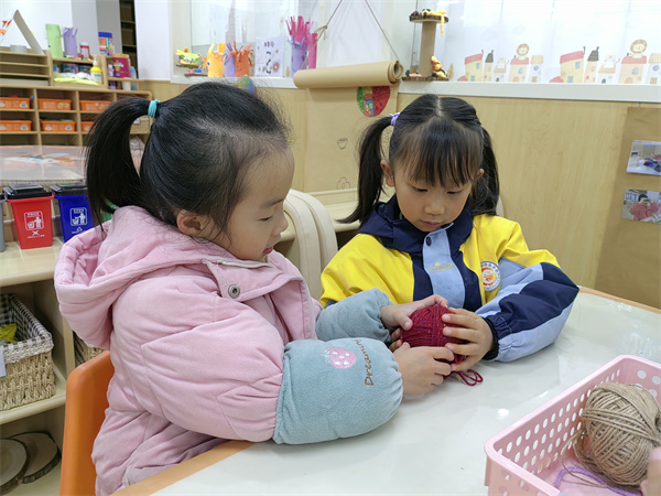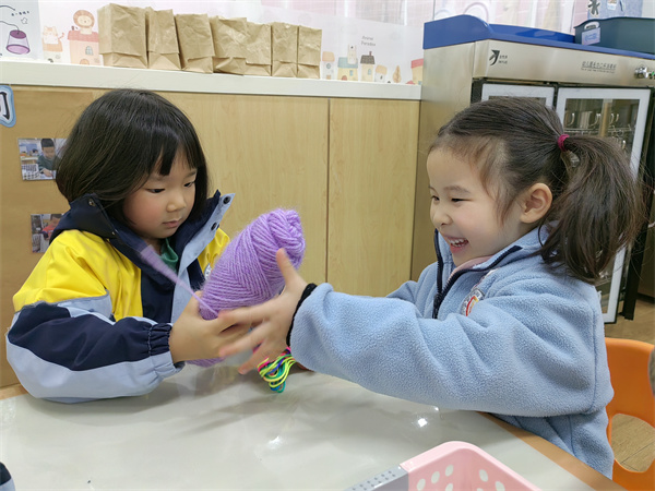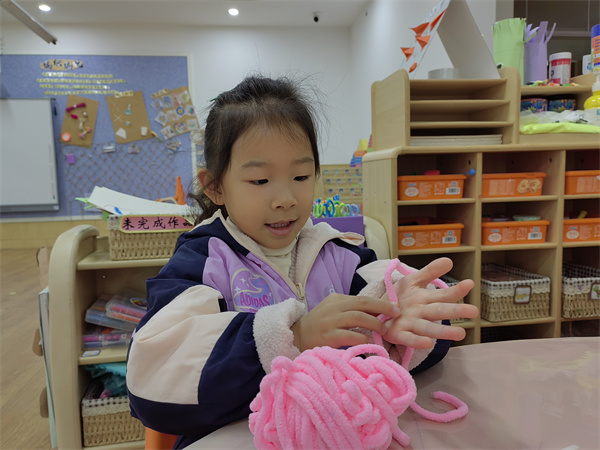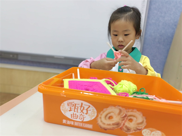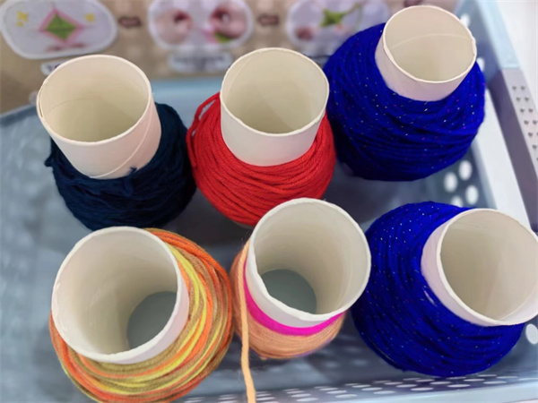 樂(lè)恩:“上次吳昀朵帶來(lái)了紙芯桶,可以把毛線繞在那個(gè)上面就好了?!?/p>