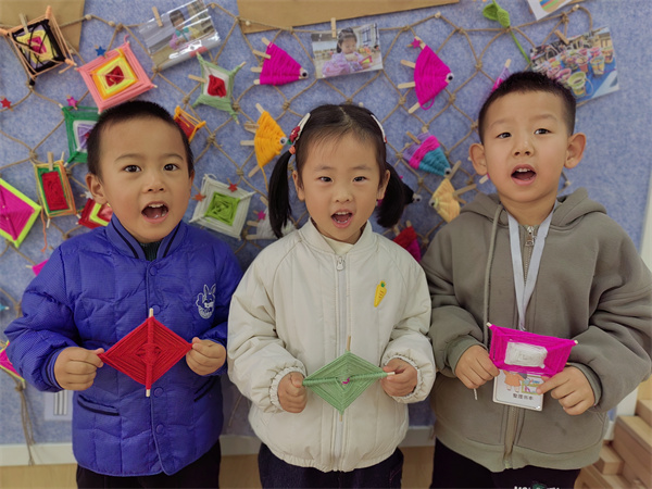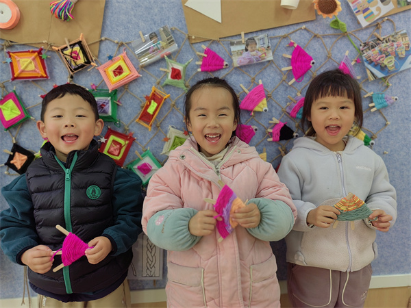 經(jīng)過(guò)小朋友們一次又一次的操作嘗試中,遇到的問(wèn)題都進(jìn)行了有效的解決,學(xué)會(huì)了編織繞線的初步方法,對(duì)編織的興趣更加強(qiáng)烈!操作過(guò)程中小朋友的思維越來(lái)越活躍,小手越來(lái)越靈活,動(dòng)作也越來(lái)越協(xié)調(diào)。