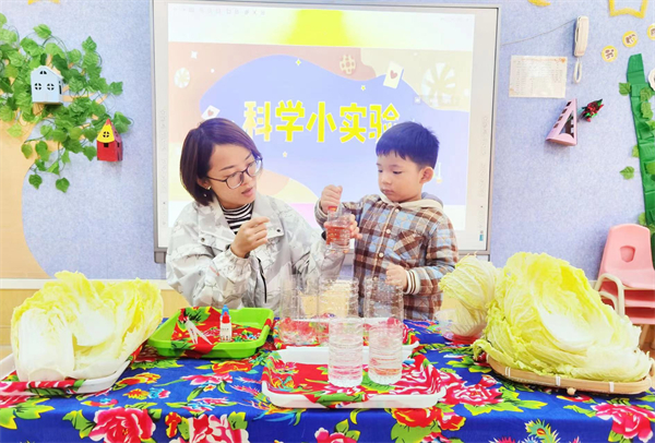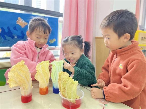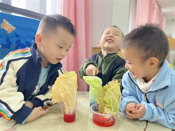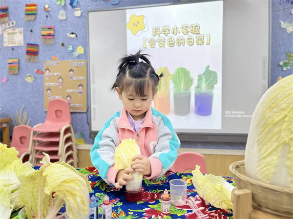 如何讓孩子們喜歡上白菜,“接納”這位新朋友呢?隨著一棵白白、嫩嫩的大白菜的到來(lái),小班組開展了一場(chǎng)關(guān)于白菜的趣“遇”之旅。