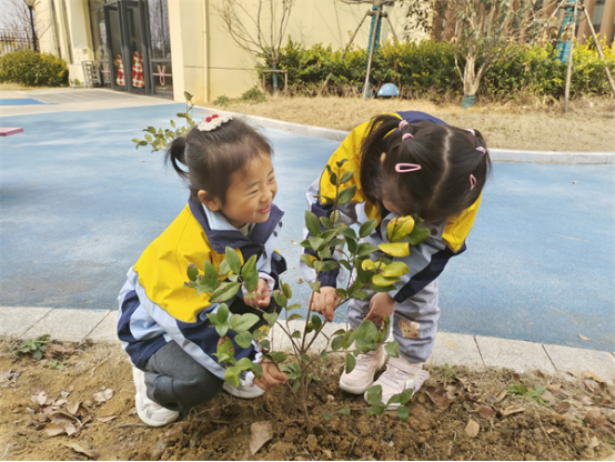 “嘿咻,嘿咻”盡管小朋友們擦著汗,手里的小鏟子也沒(méi)有停下來(lái),今年我們迎來(lái)了第四十六個(gè)植樹(shù)節(jié),中二班的小朋友和老師一起為小樹(shù)苗翻土、澆水,小沐突然問(wèn)道:“老師為什么大家總是喜歡在春天種樹(shù)呢?"小朋友們瞬間都被這個(gè)問(wèn)題吸引住了。