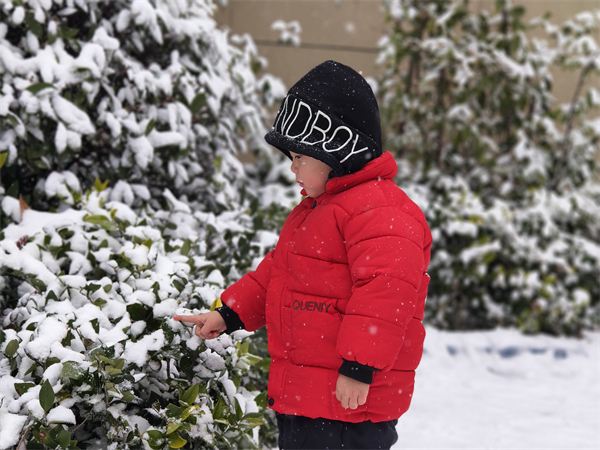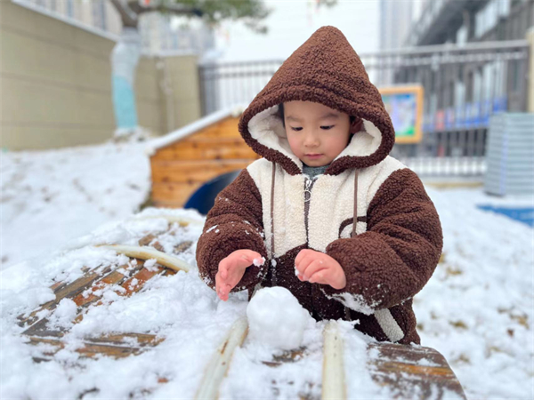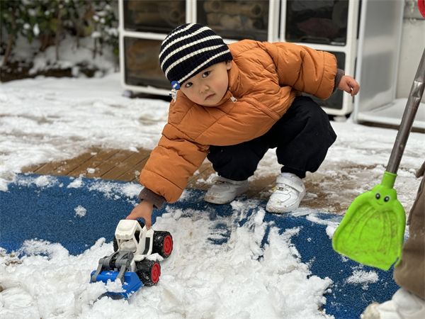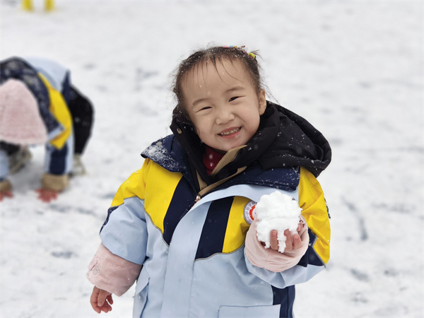 對于幼兒來說,雪就是大自然送來的驚喜,是幼兒期盼的禮物。屋檐上的雪、樹梢上的雪、操場上的雪,甚至落在滑梯上的雪,都讓幼兒的眼睛閃閃發(fā)光,充滿了好奇和喜悅。