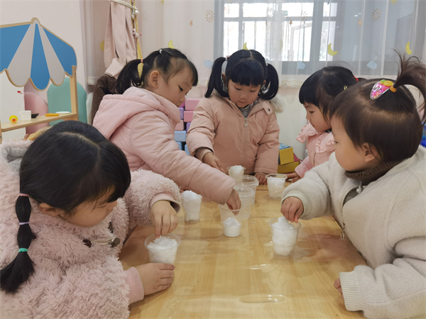 在冬日的陽光下,一群可愛的幼兒興致勃勃地進行了一場有趣的實驗。他們拿著熱水和鹽,準備比較哪一個能更快地融化雪花。通過這個實驗,孩子們初步了解了熱量、鹽度與物體融化速度之間的關系。感受到了大自然的神奇,并度過了一個難忘的冬日時光。