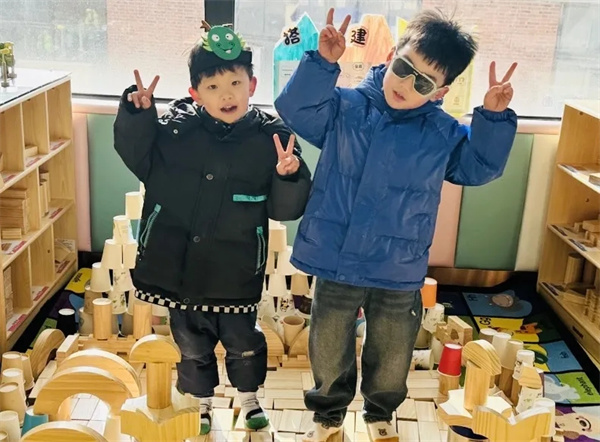 在這一次的建構游戲時間里,幼兒進行的不是單純的一種類型的獨立搭建游戲,而是主題游戲的綜合體現(xiàn)。幼兒的合作與交往能力也在這次游戲中得到了發(fā)展,體驗到了成功的快樂,更享受了和好朋友在一起游戲的美好時光!