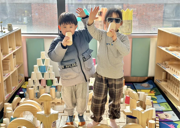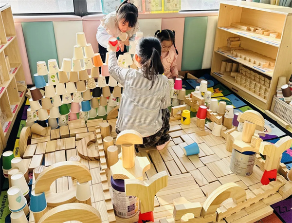 在小朋友們的共同努力下,小舞臺已初具規(guī)模。