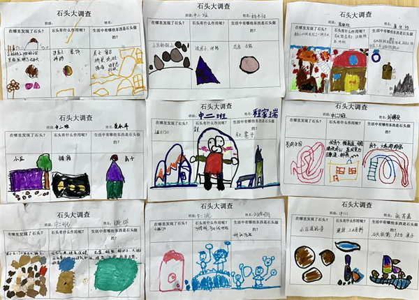 為讓幼兒對(duì)石頭有前期了解,帶著這些問題我們?cè)O(shè)計(jì)了一張關(guān)于石頭的調(diào)查表,讓家長(zhǎng)和幼兒們一起調(diào)查發(fā)現(xiàn),找一找身邊的石頭......