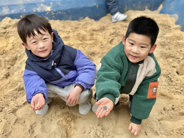 幼兒在尋找石頭的過程中發(fā)現(xiàn)了形狀、顏色、大小發(fā)現(xiàn)石頭的新特點(diǎn)。這些大小不一樣的石頭激起了幼兒的繼續(xù)探究的興趣。