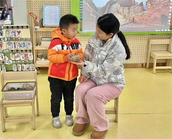 利用空余時(shí)間,家長(zhǎng)帶著幼兒去戶外尋找各種石頭,了解各種有關(guān)石頭的知識(shí)、用途,利用周圍自然環(huán)境,自由的讓幼兒在感知、觀察、了解的基礎(chǔ)上探索發(fā)現(xiàn),支持幼兒那份好奇心和探索欲。