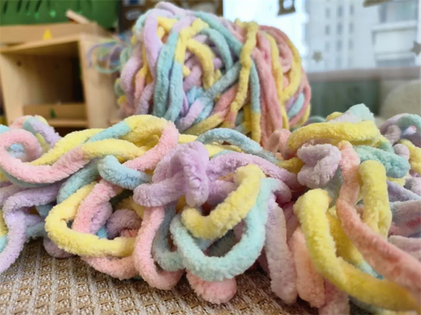 活動開始,教師呈現(xiàn)不同材質(zhì)的毛線,引導(dǎo)幼兒通過小手摸一摸,眼睛看一看的方式去探索、認識毛線,體會各種毛線帶來的不同感受,感知毛線長短、粗細、軟硬等不同特征,從而對毛線產(chǎn)生濃厚的興趣。