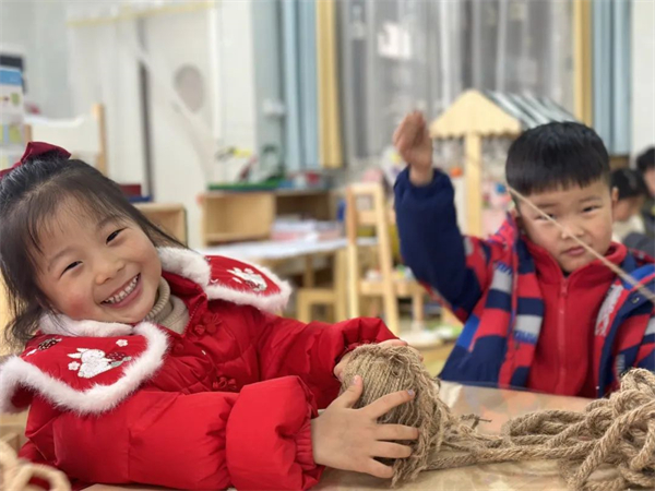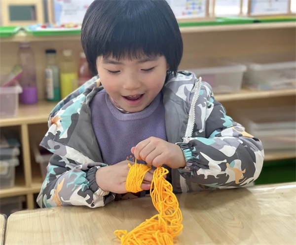 中班年齡階段的幼兒好奇好問,樂于去探索,具有一定的探知欲。合作意識有了顯著提高,對于周邊的事物愿意用眼見去觀察、耳朵去傾聽、小手去實踐?!?/font>3-6歲兒童學(xué)習(xí)與發(fā)展指南》中明確提出,要培養(yǎng)幼兒的探究興趣,讓幼兒具有初步的探究欲望和能力。著名教育家陶行知先生提出“生活即教育”理論,生活處處皆課程。而毛線在冬季的生活中極其常見,因此,合肥市藍光融熠幼兒園中二班教師選用幼兒感興趣的毛線,開展了一場探索毛線用途的課程活動。