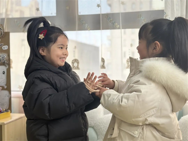 幼兒在纏繞毛線過程中,不斷發(fā)展手部小肌肉和精細動作,身體小肌肉控制能力越來越好,為了促進幼兒精細動作的進一步提升,教師在幼兒已有纏繞毛線的基礎(chǔ)上教授幼兒難度高一些的毛線編織技巧。
