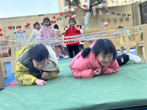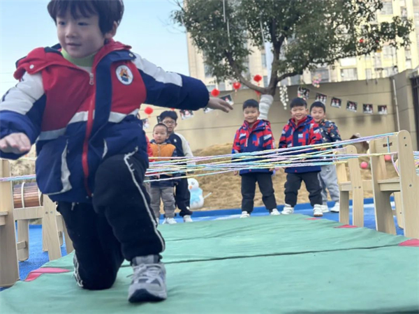 幼兒們通過各種毛線編織有了制作工藝毛線的成就感后,對毛線的探索興趣愈加濃厚。毛線的玩法各式各樣,不僅可以進行手工編織,適當(dāng)?shù)丶由弦恍┹o助,它還可以幫助我們鍛煉身體呢!在教師和幼兒的奇思妙想下,由一根根簡單的毛線做成的各種戶外體育器械成了小朋友們戶外最愛的游戲。