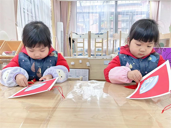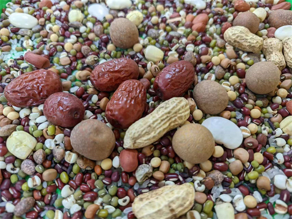 臘八粥的食材不僅提供了食物的營養(yǎng)價值,還蘊含著豐富的文化和象征意義。比如:紅豆寓意思念,黑豆寓意富貴平安,花生寓意健康長壽,桂圓寓意團圓等??炜矗〖t豆、黑豆、花生、綠豆、桂圓等臘八粥的原料通過小一班小朋友們的創(chuàng)作變成了一幅幅精美的豆貼畫吊墜,真的好看極了!