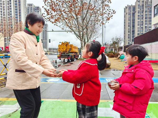 大家快瞧!在這個寒冷的冬天里,制作臘八粥的小朋友們把一碗碗熱氣騰騰的臘八粥送給了園門口站崗的保安爺爺,感謝他辛苦的保衛(wèi)我們的幼兒園。與此同時,廚房阿姨們和保潔奶奶也收到了甜甜的臘八粥,不禁贊嘆:“真的太溫暖了!謝謝可愛的小朋友們!”