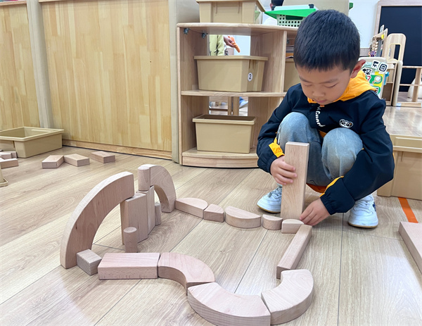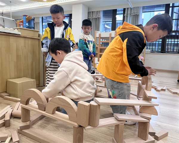 在老師的帶領(lǐng)下,幼兒通過(guò)視頻、圖片等方式認(rèn)識(shí)到了這次亞運(yùn)會(huì)舉辦場(chǎng)地——杭州奧體中心,小朋友們躍躍欲試,用積木搭建的方式筑造起了自己心中的運(yùn)動(dòng)場(chǎng)館。