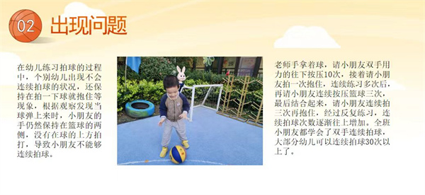 幼兒們通過觀察老師拍攝小朋友拍球的視頻,利用經(jīng)驗(yàn)分享和堅(jiān)持練習(xí)等方式,逐步征服這個總是跳來跳去的“小精靈”。