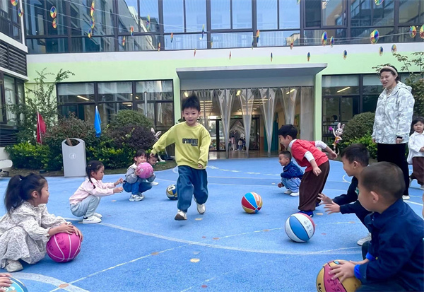 小小的籃球能讓孩子們在積極鍛煉身體的同時感受到探索的快樂,嘗試了球的一物多玩,相信他們還會有更多新的探索和發(fā)現(xiàn),讓我們一起期待吧!