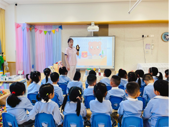 “熊寶寶收集了許多的空罐子想用來(lái)做什么呢?”教師帶領(lǐng)幼兒一起走進(jìn)了繪本故事《熊寶寶的空罐子》,感知不同瓶罐的不同用處,使幼兒懂得了幫助別人能給我們帶來(lái)快樂(lè)。整個(gè)故事充滿了溫情與智慧,孩子們被深深地吸引,沉浸在這個(gè)關(guān)于瓶瓶罐罐的繪本故事中。