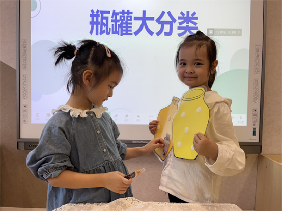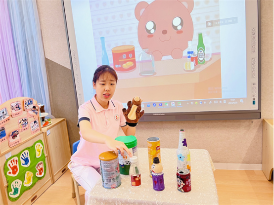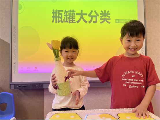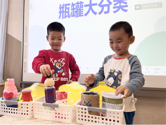 “那瓶子和罐子都有哪些種類的呢?我們一起分類吧!”