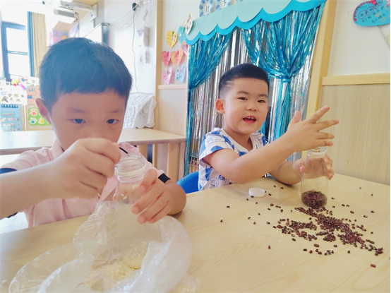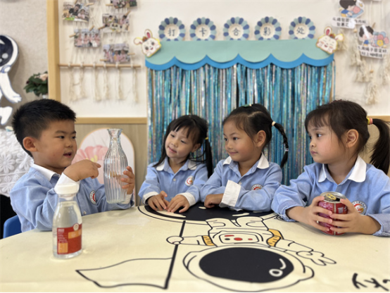 經(jīng)過(guò)寶貝們的收集,教室里放滿了各種各樣的瓶罐,在使用瓶罐的過(guò)程中,孩子們發(fā)現(xiàn)了一個(gè)關(guān)于瓶罐的秘密。