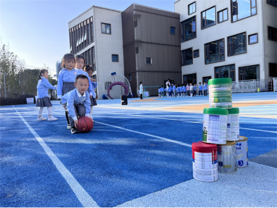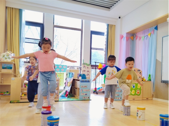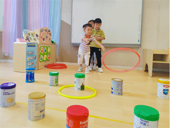 可別小瞧這些瓶子罐子,它們的玩法還很多,孩子們自發(fā)玩起了瓶罐投壺、瓶罐獨(dú)木橋、瓶罐套圈圈、瓶罐保齡球等游戲,在探索與瓶罐有關(guān)的游戲中收獲了快樂(lè),還了解到了合作的重要性,提高了游戲水平。