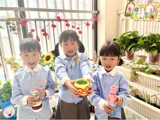 基于幼兒的生活、興趣、需要、能力,幼兒在瓶罐的世界里去觀察比較瓶罐的異同,與瓶罐一起進(jìn)行有趣的游戲,創(chuàng)造不同的玩法,感受變廢為寶的趣意。在瓶罐主題探究的過(guò)程中,他們把普普通通的瓶罐變成一個(gè)個(gè)美麗的花瓶,變成能發(fā)出不同聲響的樂(lè)器,變成我們的運(yùn)動(dòng)器械,展現(xiàn)了幼兒的想象力與創(chuàng)造力。幼兒的探究與思考還在不斷的發(fā)生,讓我們共同期待他們創(chuàng)造更多的可能。