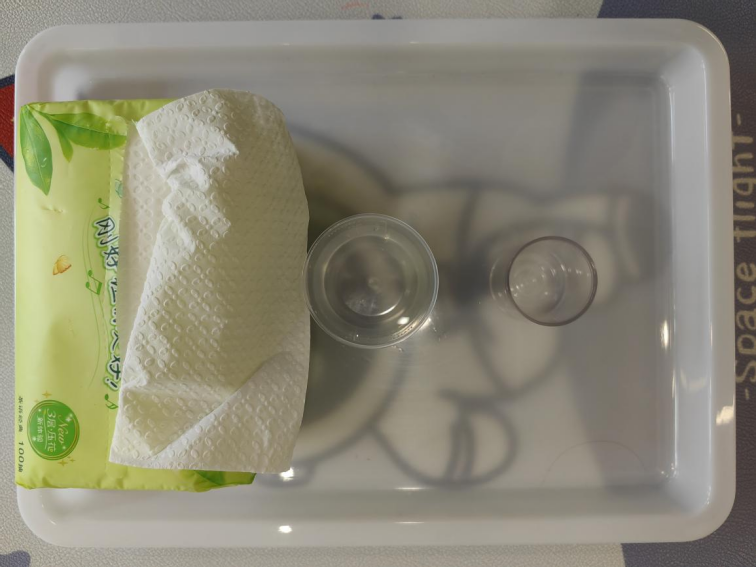 實(shí)驗(yàn)材料:實(shí)驗(yàn)托盤、量杯、大杯子、紙巾。