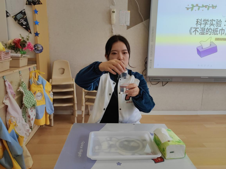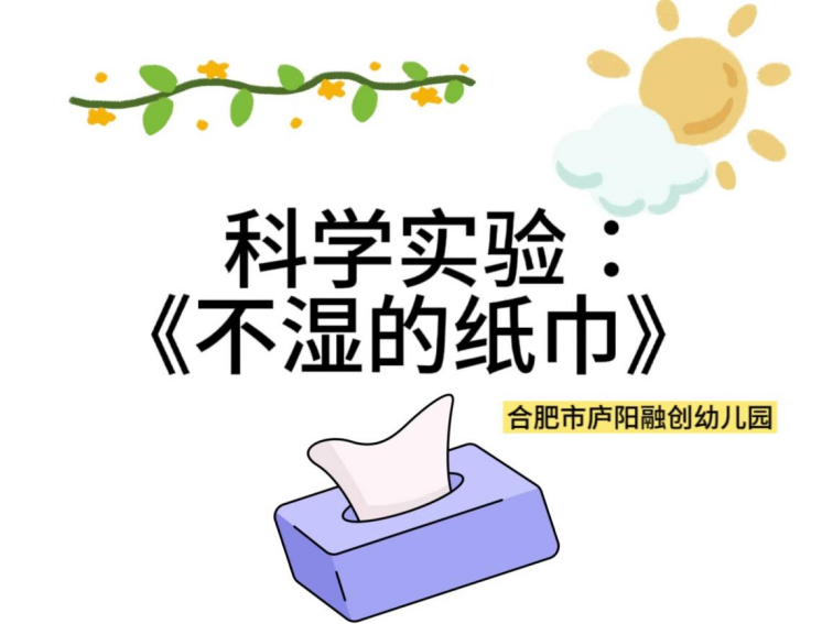 在《幼兒園教育指導(dǎo)綱要》中指出“在幼兒園教育中要引導(dǎo)幼兒對(duì)身邊常見事物和現(xiàn)象的特點(diǎn)、變化規(guī)律產(chǎn)生興趣和探究的欲望。”紙巾是幼兒生活中常見的、熟悉的東西,紙巾遇水會(huì)濕也是幼兒已知的生活經(jīng)驗(yàn),那么今天大一班小朋友們就要打破認(rèn)知,一起探索紙巾不濕的神奇奧秘。