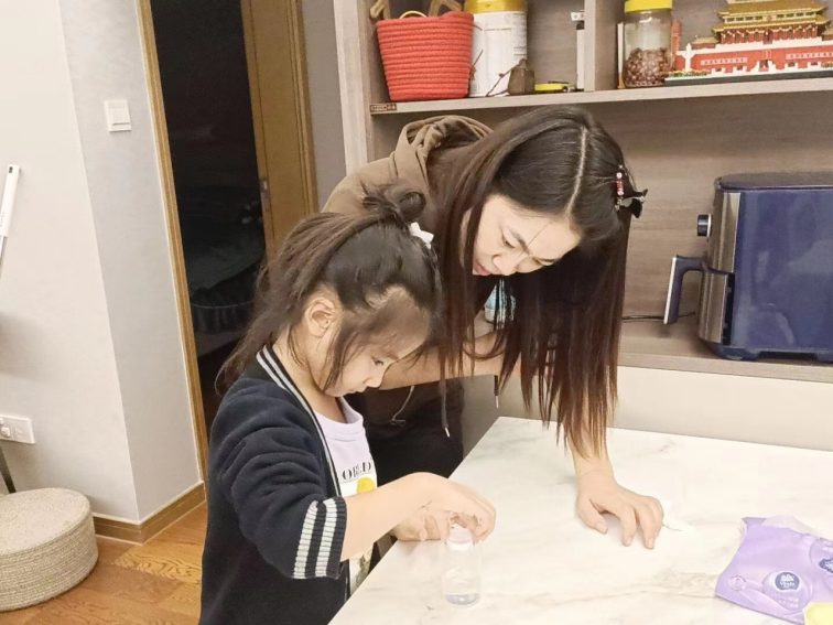 回到家后,小朋友們迫不及待想和爸爸媽媽一起做實(shí)驗(yàn)。媽媽拿來(lái)水杯和紙巾,準(zhǔn)備好了實(shí)驗(yàn)材料,小朋友就開始自己動(dòng)手操作啦!