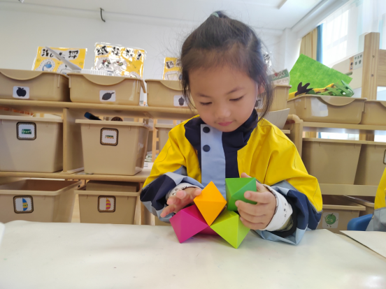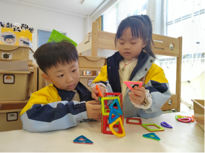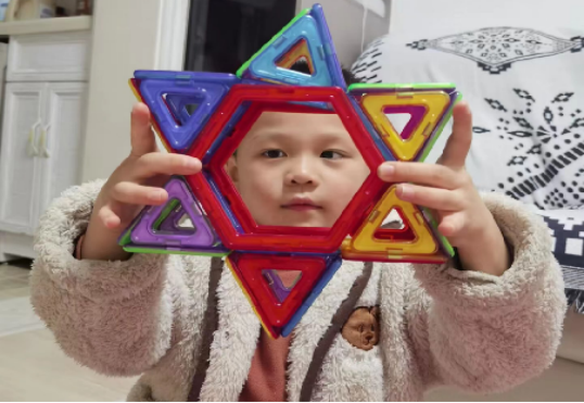 在小朋友的眼里,世界充滿了奇妙的色彩!為什么天會這樣藍(lán),為什么花兒總是這么鮮艷?為什么小鳥能飛翔……孩子們的好奇心像一顆永不熄滅的火苗,生活中再常見的事物都能引起他們極大的關(guān)注。今天中五班的孩子們就對區(qū)角中的磁力片產(chǎn)生了極大的興趣。