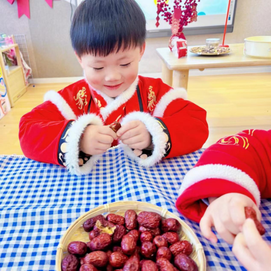 窗外瑞雪飄飄,屋內(nèi)粥香縈繞。臘八節(jié)人們喝臘八粥是最講究的習(xí)俗。暖暖香香的臘八粥由紅豆、黑米、蓮子、紅棗……各種五谷雜糧組成。老師帶領(lǐng)孩子們一起認(rèn)識(shí)臘八粥的食材,一起動(dòng)手煮一鍋甜甜的臘八粥,小朋友們你一口,我一口,吃的可開心啦!