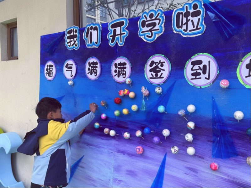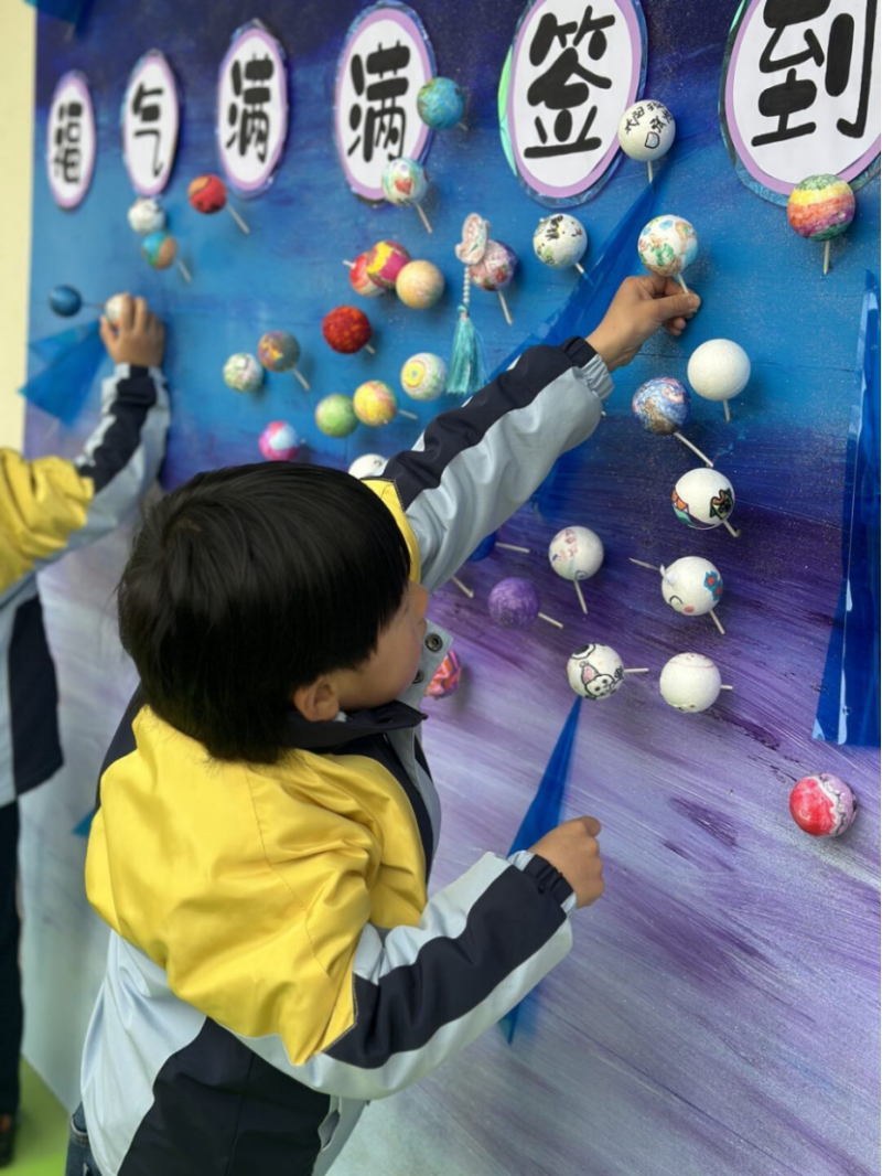 以開學(xué)之名,載祝福之意。清晨,孩子們正歡呼雀躍地步入久違的幼兒園,在一個(gè)個(gè)大大的擁抱、一聲聲熱情的“早上好”中拉開了新學(xué)期的帷幕。絢爛的星球,每顆星球都蘊(yùn)藏了一個(gè)甜美的夢,瞧!孩子們將自制的DIY“星球棒棒糖”插在“宇宙”簽到板上,同宇宙星空來一次親密接觸,點(diǎn)亮屬于自己的星球。滿滿的希望、滿滿的祝福,寓意著新學(xué)期、新啟航,新的一年更加棒棒棒!