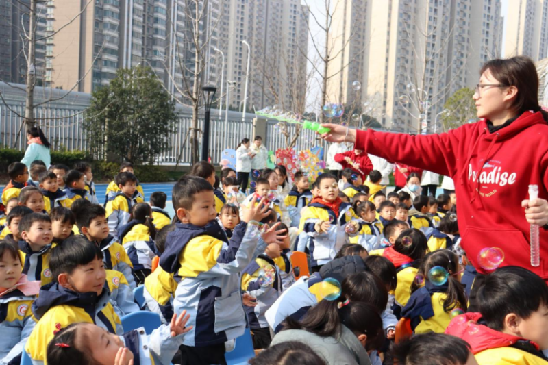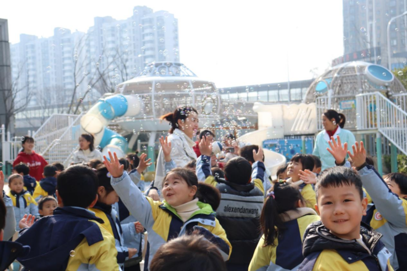 絢麗多彩的泡泡,美麗動人的童話公主,青春活力的幼兒教師,廬陽融創(chuàng)幼兒園的操場是一片歡樂的海洋。孩子們沉浸于美麗夢幻的泡泡秀中,帶給孩子無限的美好和想象,讓孩子們進(jìn)一步喜歡幼兒園,愛上幼兒園!