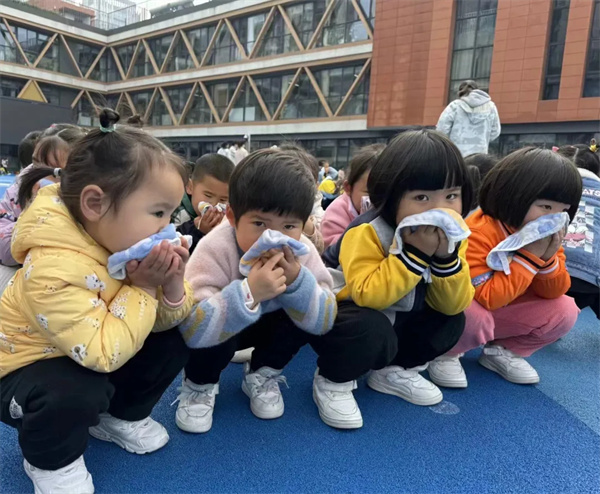 到達操場后,各班級教師立即清點人數(shù),確保每位幼兒都安全撤離。