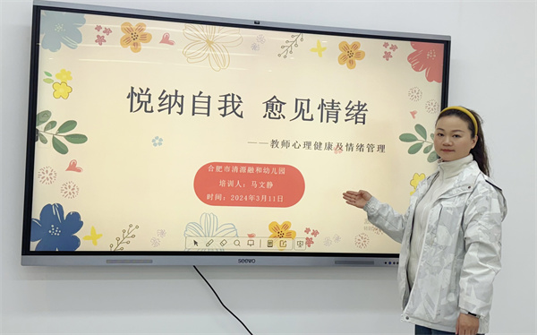 教師是多重角色的承擔(dān)者,在角色扮演和轉(zhuǎn)換的過(guò)程中可能面臨著一些心理壓力。為增進(jìn)教職工心理健康水平、提升教職工自我情緒的管理能力、舒緩壓力,2024年3月11日合肥市清源融和幼兒園開(kāi)展教師心理健康知識(shí)培訓(xùn)。
