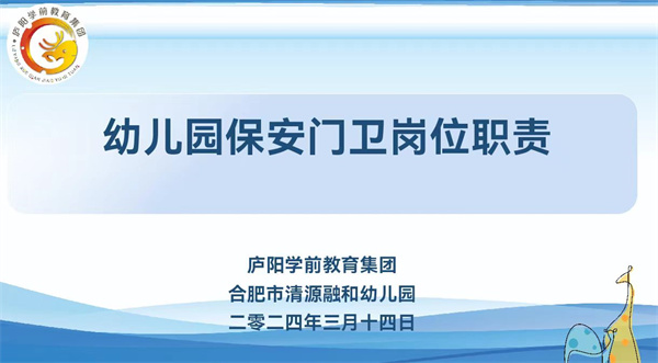 幼兒園保安、門衛(wèi)的崗位職責(zé)非常重要,保安門衛(wèi)的工作直接關(guān)系到幼兒的生命安全和身體健康,是幼兒園正常運作的重要保障,承擔(dān)著保護幼兒安全、維護校園秩序、保障教學(xué)活動正常進行等多重責(zé)任。為切實加強幼兒園安保工作,提升保安、門衛(wèi)業(yè)務(wù)素質(zhì),進一步保障師幼安全,2024年3月14日在后勤主任王露露的組織下合肥市清源融和幼兒園開展了保安門衛(wèi)崗位職責(zé)培訓(xùn)。