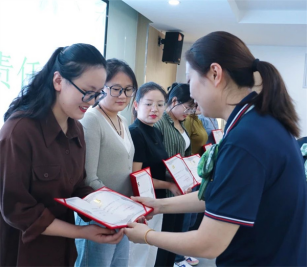 隨后,教師們?yōu)楸緦W(xué)期新推選的家委會、伙委會委員們頒發(fā)聘書。薄薄的聘書,承載的是新的期盼;身份的疊加,意味著更多的責(zé)任。家委們手握責(zé)任,也接過了幼兒園的信任和期盼。頒發(fā)聘書,并合影留念。