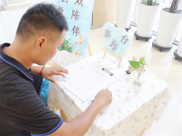 每一份溫暖的教育都是從相遇開始,帶著愛與期待,懷揣著一份信任,家長們?nèi)缂s而至,找到各自班級,有序簽到,一場心與心的相約拉開帷幕。
