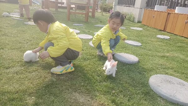 好玩的草坪:我們興奮地奔向草坪,小兔子在這里等著我們呢!