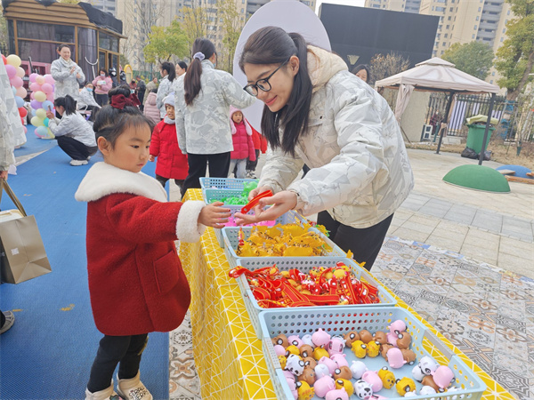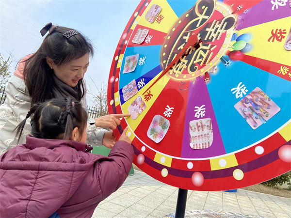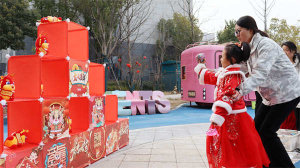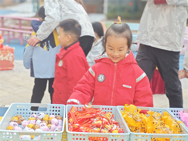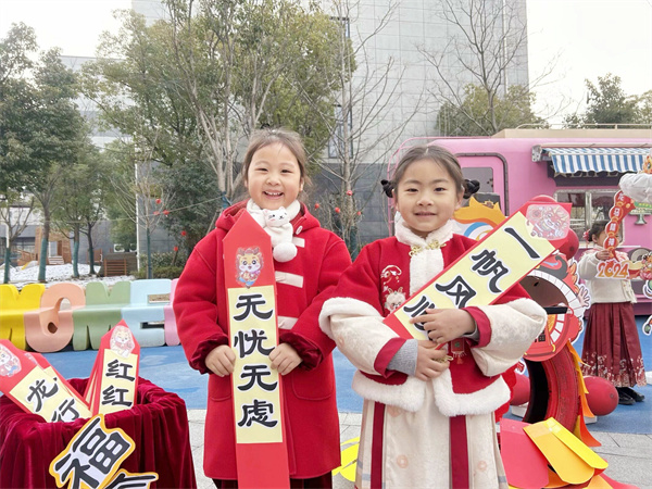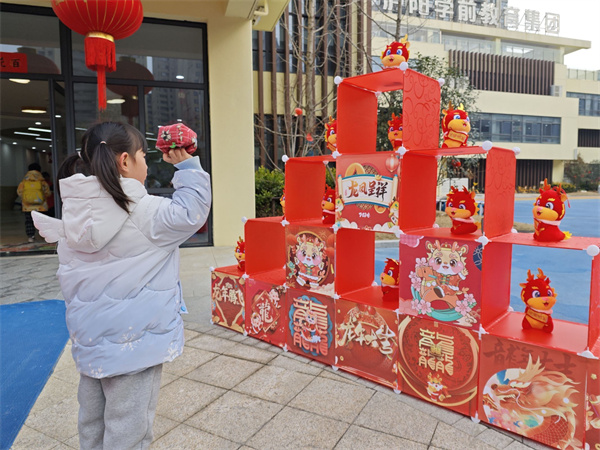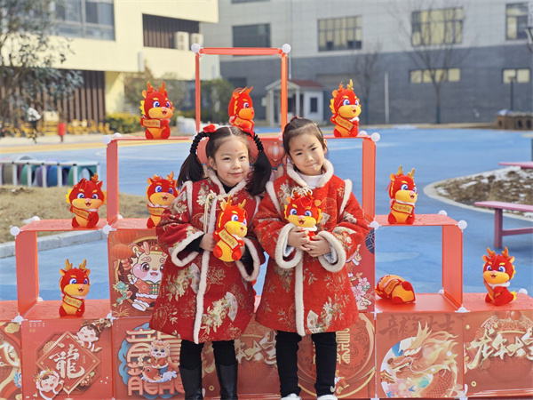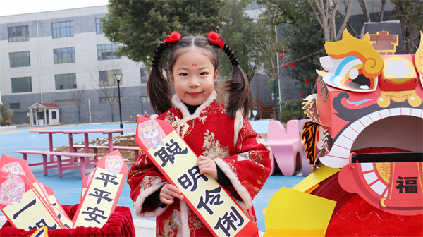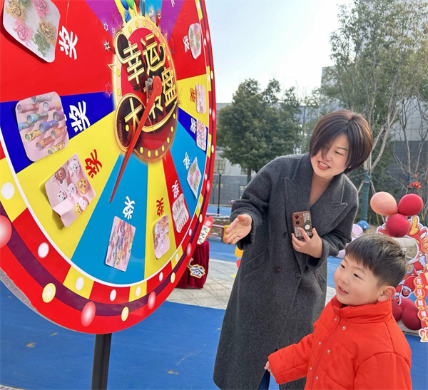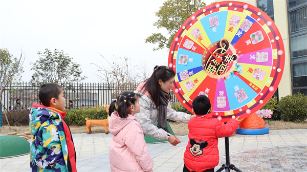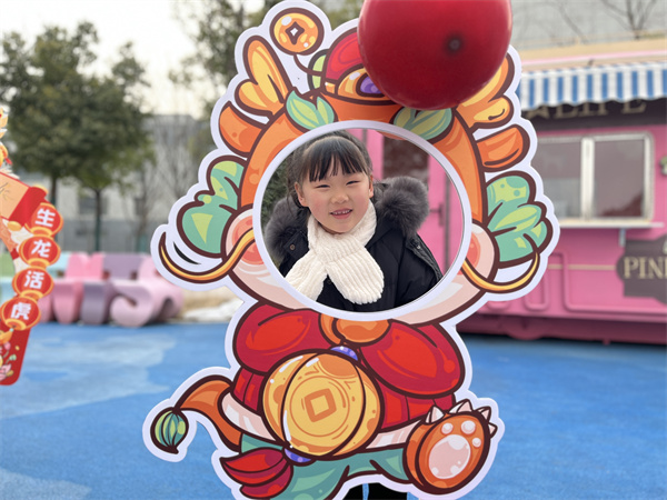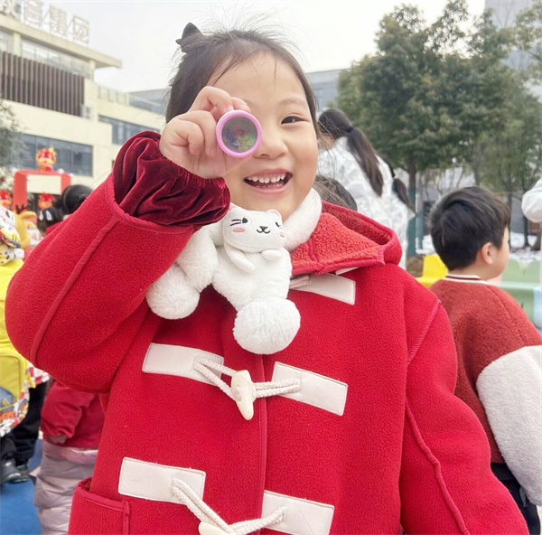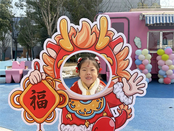 幼兒身著紅衣,踏上祝福的紅毯,依次開始進(jìn)園儀式。龍年立牌打卡、新年抽簽、龍年禮品大放送和幸運(yùn)大轉(zhuǎn)盤前都排滿了幼兒,久久不愿離去,幼兒的歡聲笑語,洋溢著無盡的快樂。